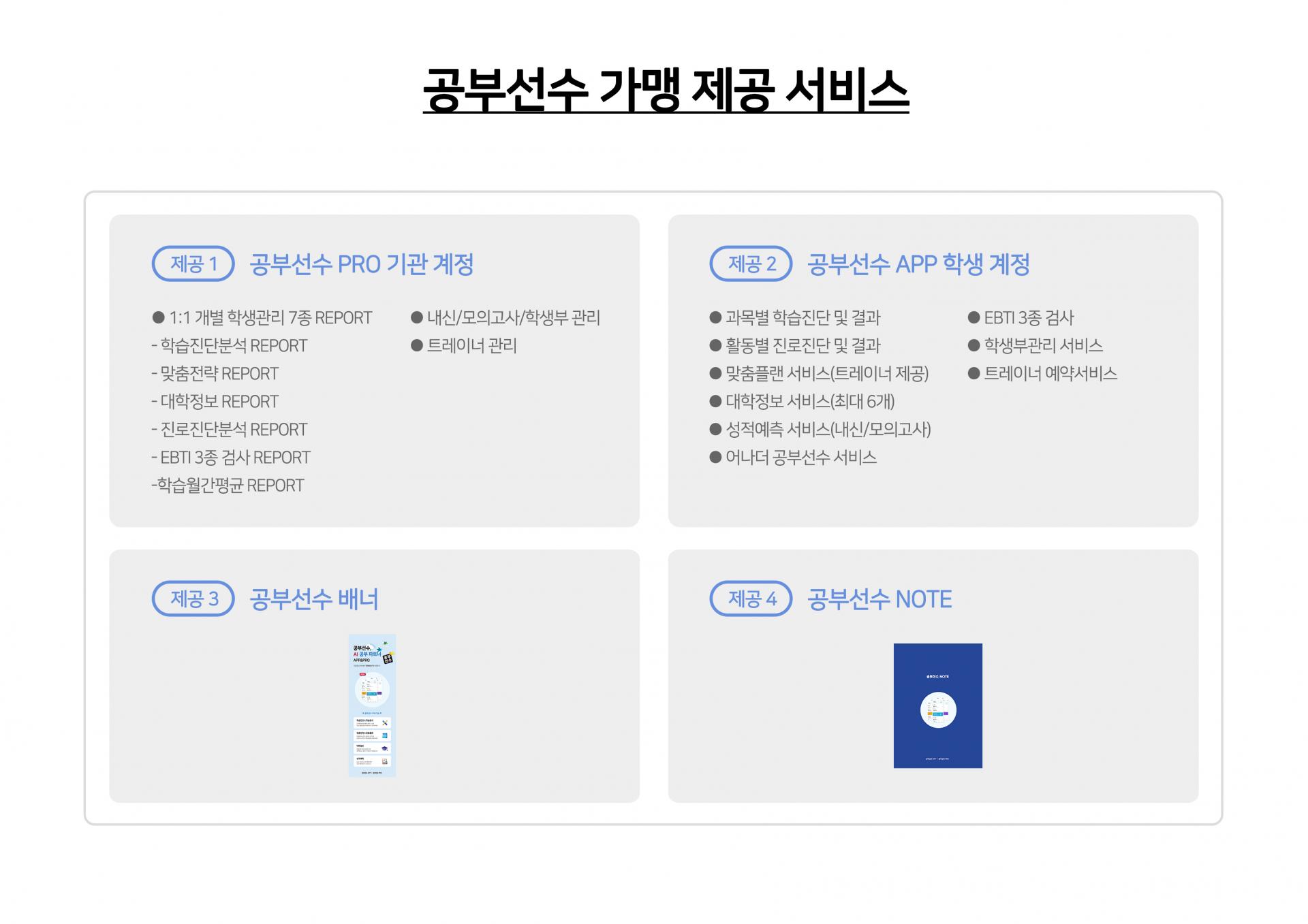 공부선수는 새로운 차원의 개별 학습관리 서비스를 제공합니다.